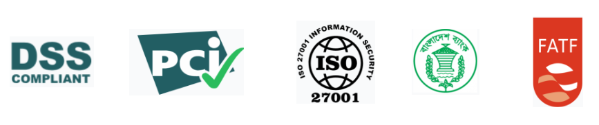 Our platform follows globally recognized compliance standards, ensuring security, trust, and reliability. Certified by leading authorities like DSS, PCI, ISO 27001, Bangladesh Bank, and FATF, we guarantee robust protection for every transaction.